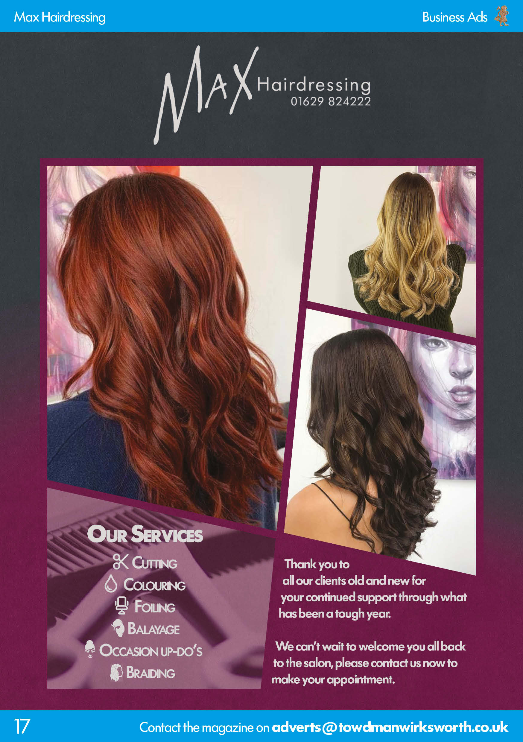 Hair salon situated in the historic town of Wirksworth, offering a wide range of services including Cutting, Colouring, Highlights, Balayage and Special occasion hair.