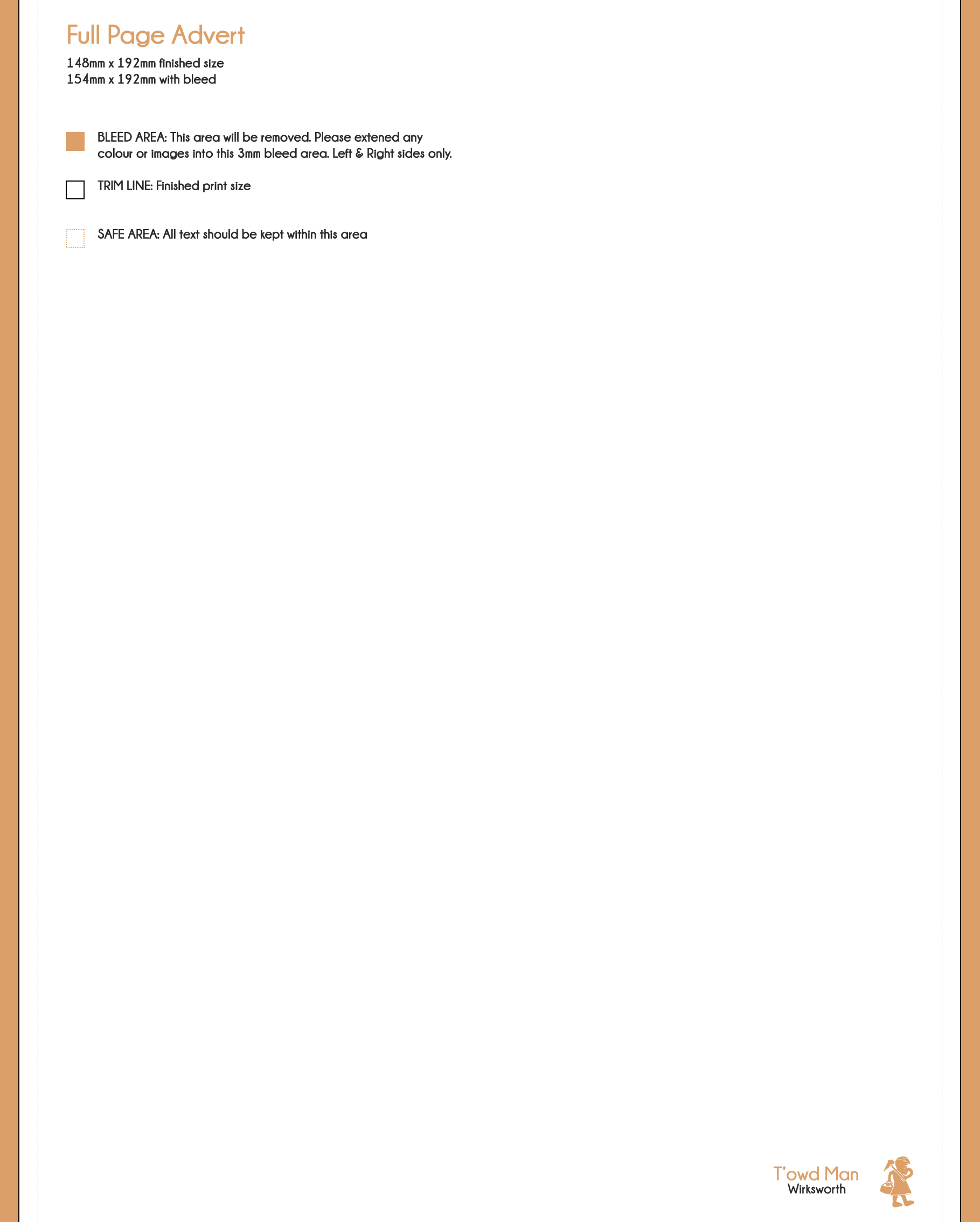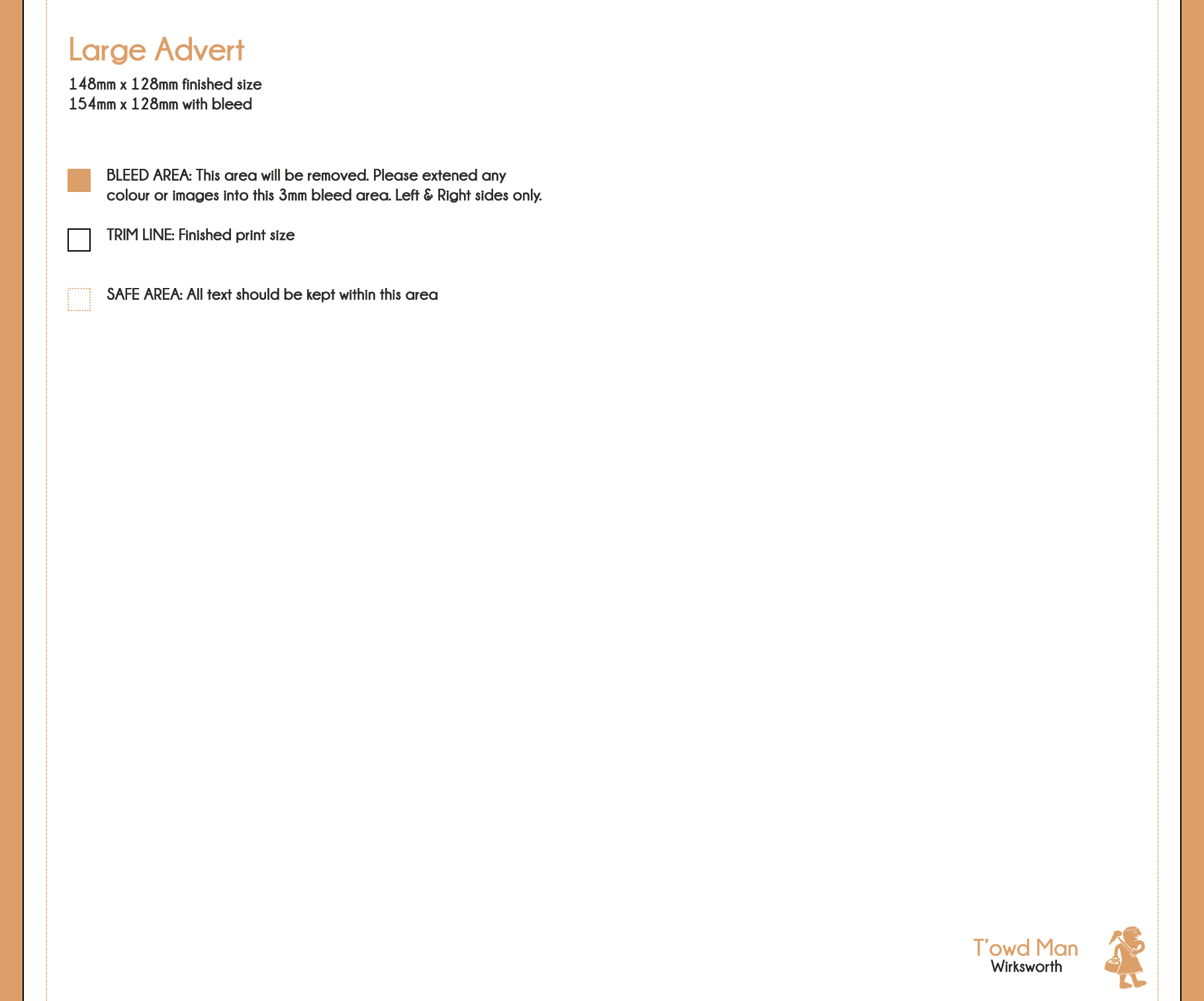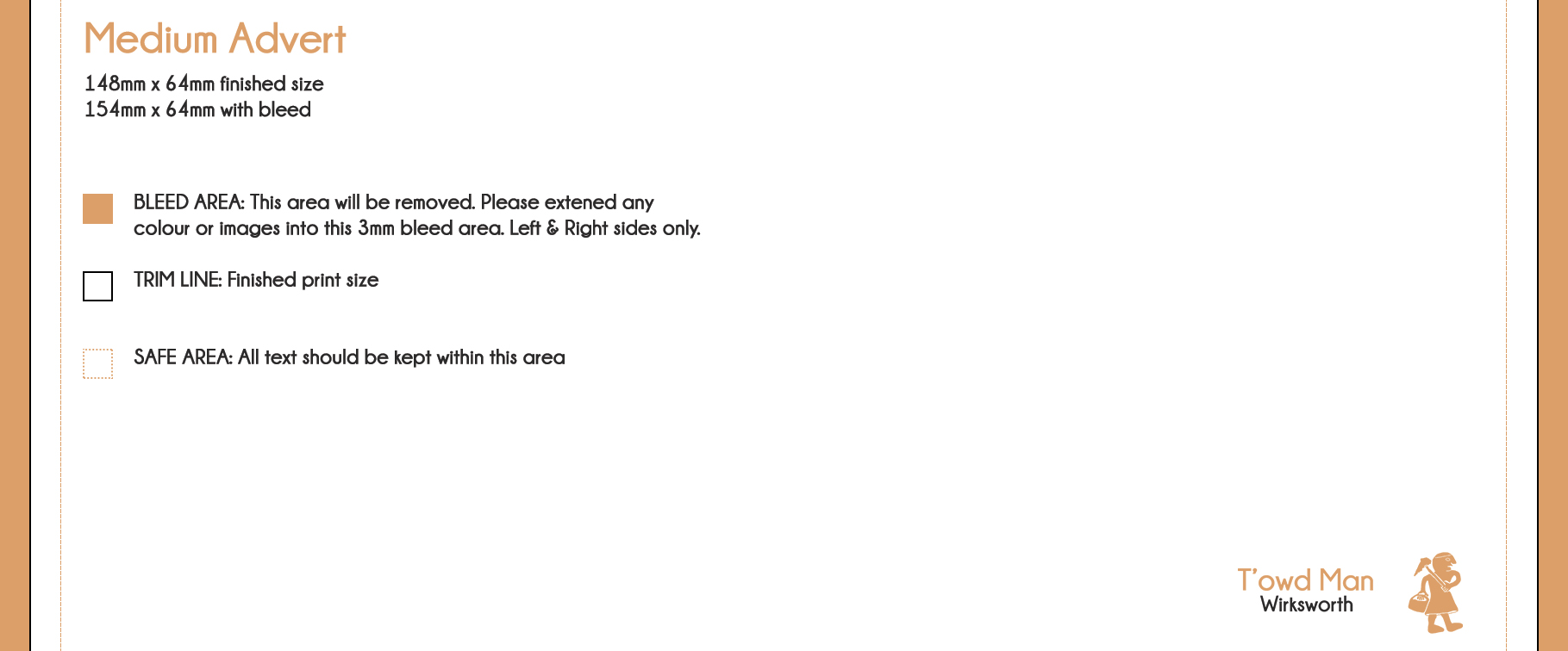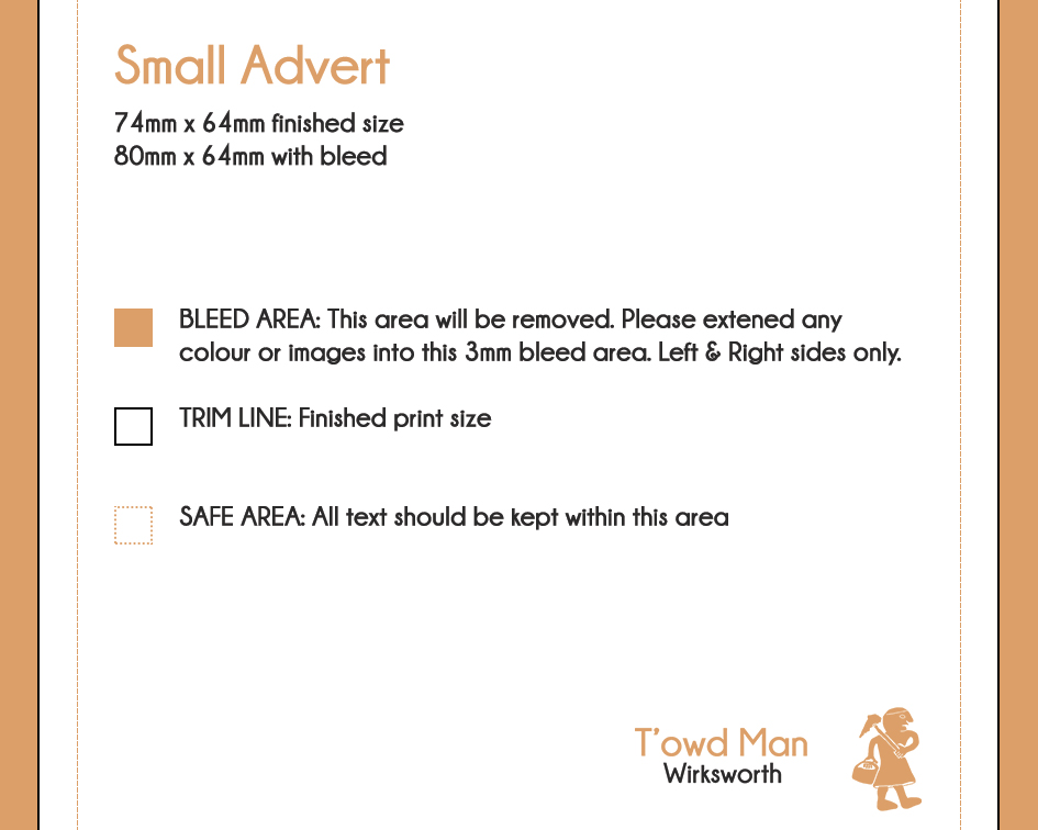 When desigining your advert please allow for a 3mm bleed for your background colour/images on the left and right sides of the advert, no bleed is required for the top or the bottom. Please keep text outside this bleed area and a further 3mm inside the safe zone.